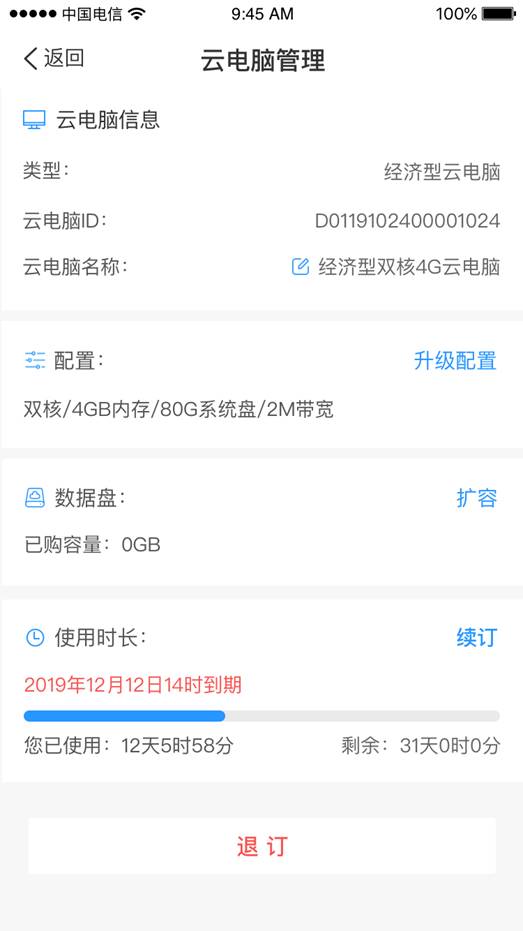 1.登录后选择“云电脑”列表查看需要扩容的云电脑;