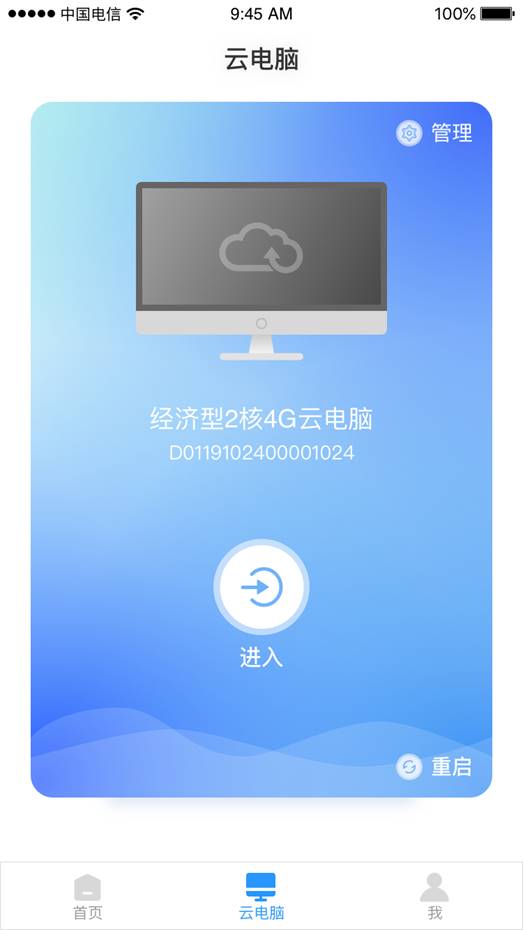 (3)确定要使用的云电脑后,点击“进入”按钮,开始您的云电脑之旅