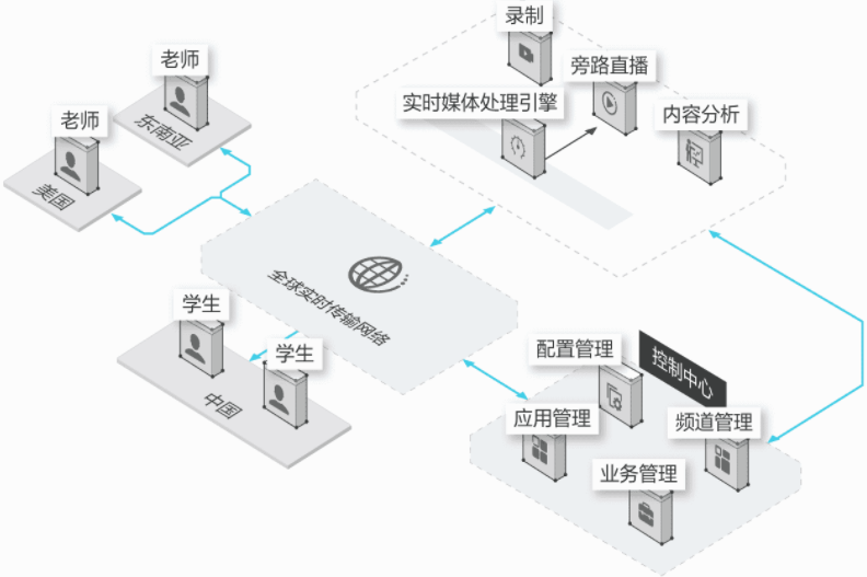 教师、学生可以在全球各个国家、城市随时接入音视频通信网络