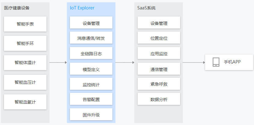 为医疗健康设备,提供设备管理、模型定义、数据分析及监控统计等平台能力,赋能健康领域 SaaS 系统实现对医疗健康数据的分析,实现用户的健康管理。