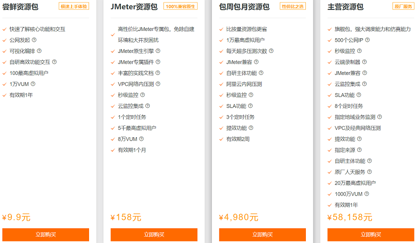 所有主营资源包均享有PTS原生压测的秒级监控能力。