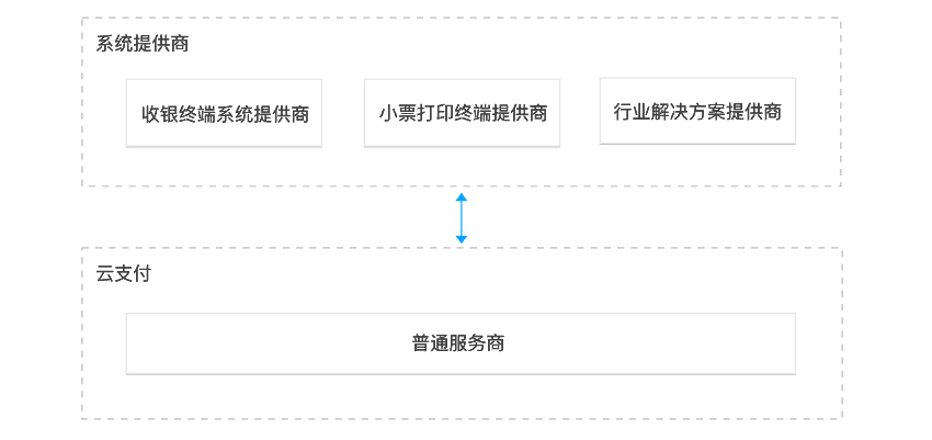 云支付提供了开放的接口,方便整个支付环节中的各个子系统提供商接入,接入后,云支付会向服务商推荐解决方案。