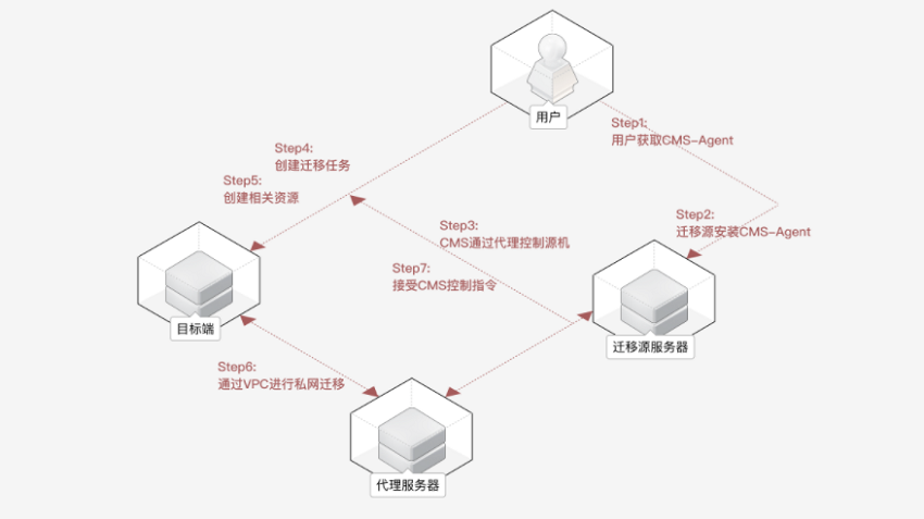 迁移产品通常需要与源主机互联直通,而此类场景存在内网区无法直接和外网区互联访问的问题