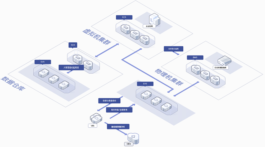 弹性云服务器 ECS 云硬盘 EVS 虚拟私有云 VPC 裸金属服务器 BMS