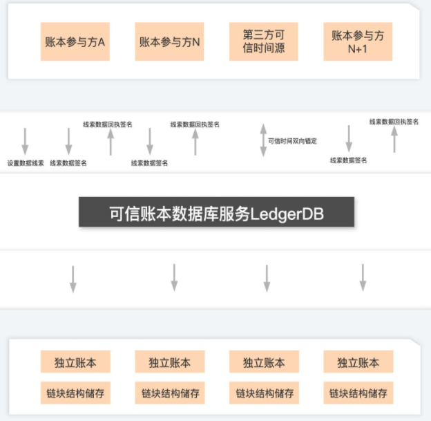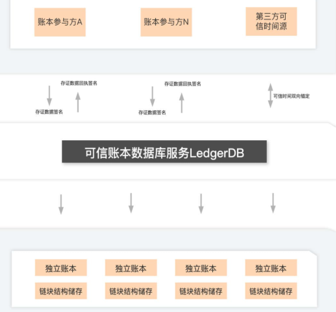 LedgerDB服务不定期对账本内的数据添加时间维度的签名,增加数据在自然时间维度不可篡改的能力。