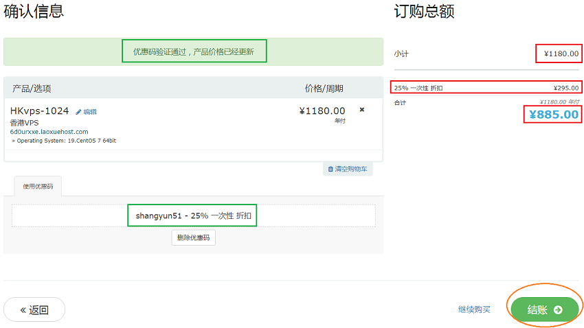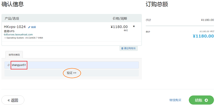 3)输入优惠码:shangyun51,点击“验证”,如图