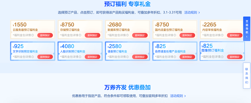 3) 优惠券适用产品包括:云服务器BCC、轻量云服务器LS、对象存储BOS、云数据库RDS、云数据库SCS、内容分发网络CDN、弹性公网IP EIP、云磁盘CDS、音视频直播LSS、智能门户AIPAGE、SSL证书、短域名DWZ、防护服务DDoS、应用防火墙WAF、主机安全 HOSTEYE,人脸识别 FACE、人脸离线识别FACE_SDK、文字识别OCR、通用文字识别(标准版)GENERAL OCR、通用文字识别(标准含位置版)LOCATION OCR、 网络图片文字识别WEBIMAGE OCR、身份证识别 ID OCR、银行卡识别 BCN OCR、语音能力引擎SPEECH、内容审核 ICR、语言生成技术NLP、图像识别IMAGER ECOGNITION、图像增强与特效IMAGE ENHANCEMENT,可用于产品新购、升配、续费场景;